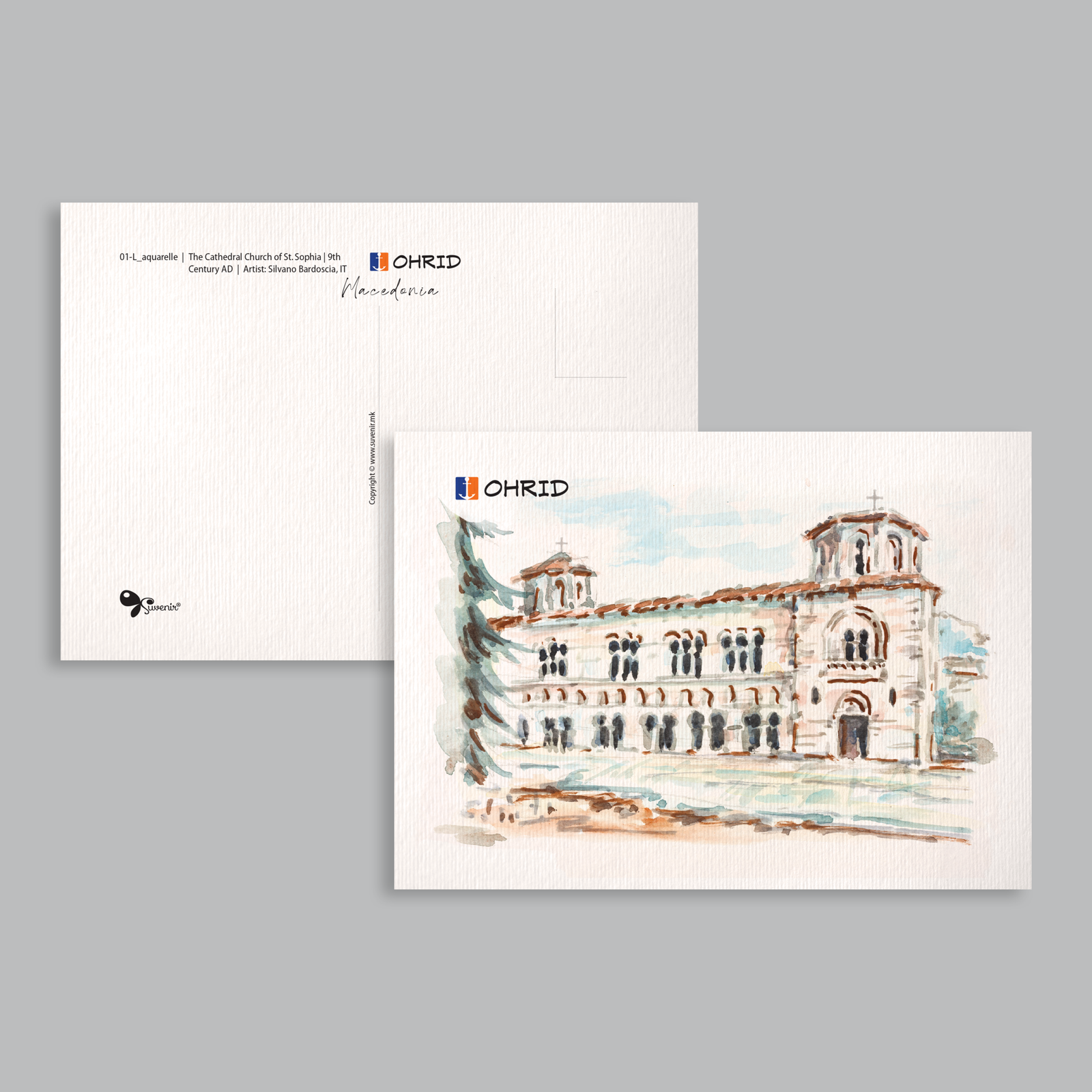 The Ohrid collection captures the timeless beauty of one of Macedonia’s most treasured cities—a UNESCO World Heritage site where history, spirituality, and natural wonder converge. Through delicate watercolor artistry, these designs honor Ohrid’s iconic landmarks: from the ancient Cathedral Church of St. Sophia to the serene Church of St. John the Theologian at Caneo, perched on the shores of Lake Ohrid.